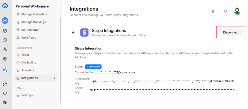 • Enter your API Keys: In the pop-up, provide the Publishable Key and Secret Key, then click Save.
