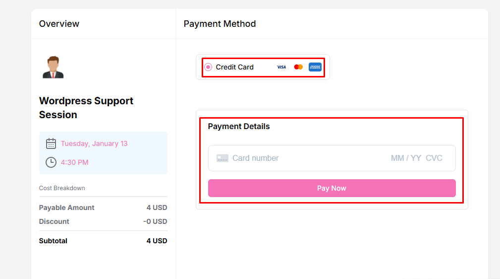 Clients can complete their payment via Stripe when booking any service.
